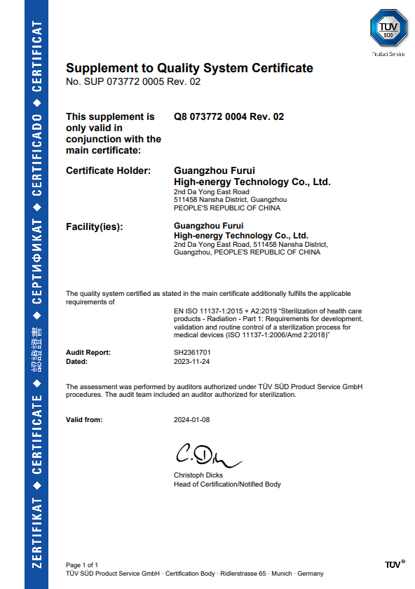 廣州輻銳高能技術有限公司系廣州科技金融集團有限公司下屬全資公司,是專業利用放射性同位素鈷-60進行核技術應用的高新技術企業。我司位于廣州市南沙區大涌東路2號,立足于粵港澳大灣區,擁有廣州國際航運中心南沙港合伙南沙港鐵路所形成的海鐵國際聯運系統核心區域優勢,服務半徑覆蓋華南地區,并觸及全國及全球范圍。